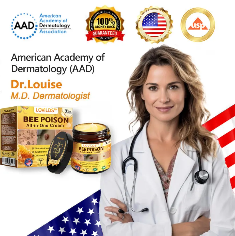“As a dermatologist, Iโve always been passionate about finding effective, natural solutions for skin problems. After extensive research and testing with my lab team, and clinical trials involving over 2,000 participants, I discovered that bee poison is a powerful natural ingredient for addressing a wide range of skin concerns. This led me to create the LOVILDSโข All-in-One Skin Repair Creamโan all-in-one solution designed to naturally and effectively relieve multiple skin issues with precision.”ย –ย Dr.Louise , Dermatologist