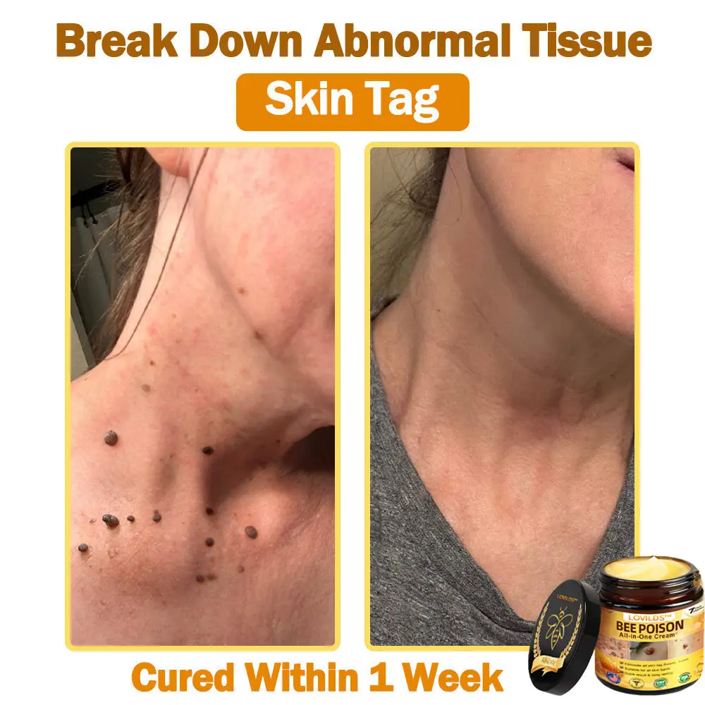 - Skin Tags: Bee poison helps gently exfoliate and break down the cells in skin tags, reducing their appearance without scarring.