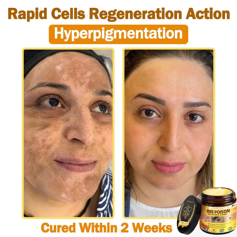 The Bee Poison All-in-One Cream is a potent remedy for addressing various skin issues, owing to its unique blend of bioactive compounds from bee poison. With proven anti-inflammatory, antibacterial properties, and powerful enzymes, it effectively tackles different skin problems.
