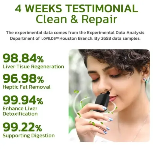 The LOVILDS™ Vegan Liver Cleaning Nasal Herbal Box helps you activate liver cell regeneration, repair the liver, enhance liver detoxification ability, and eliminate inflammation. It also effectively treats fatty liver, alcohol-induced hepatitis, liver fibrosis, obesity, staying up late, and other issues, as well as cirrhosis. The healthy liver remodels within 8 weeks.