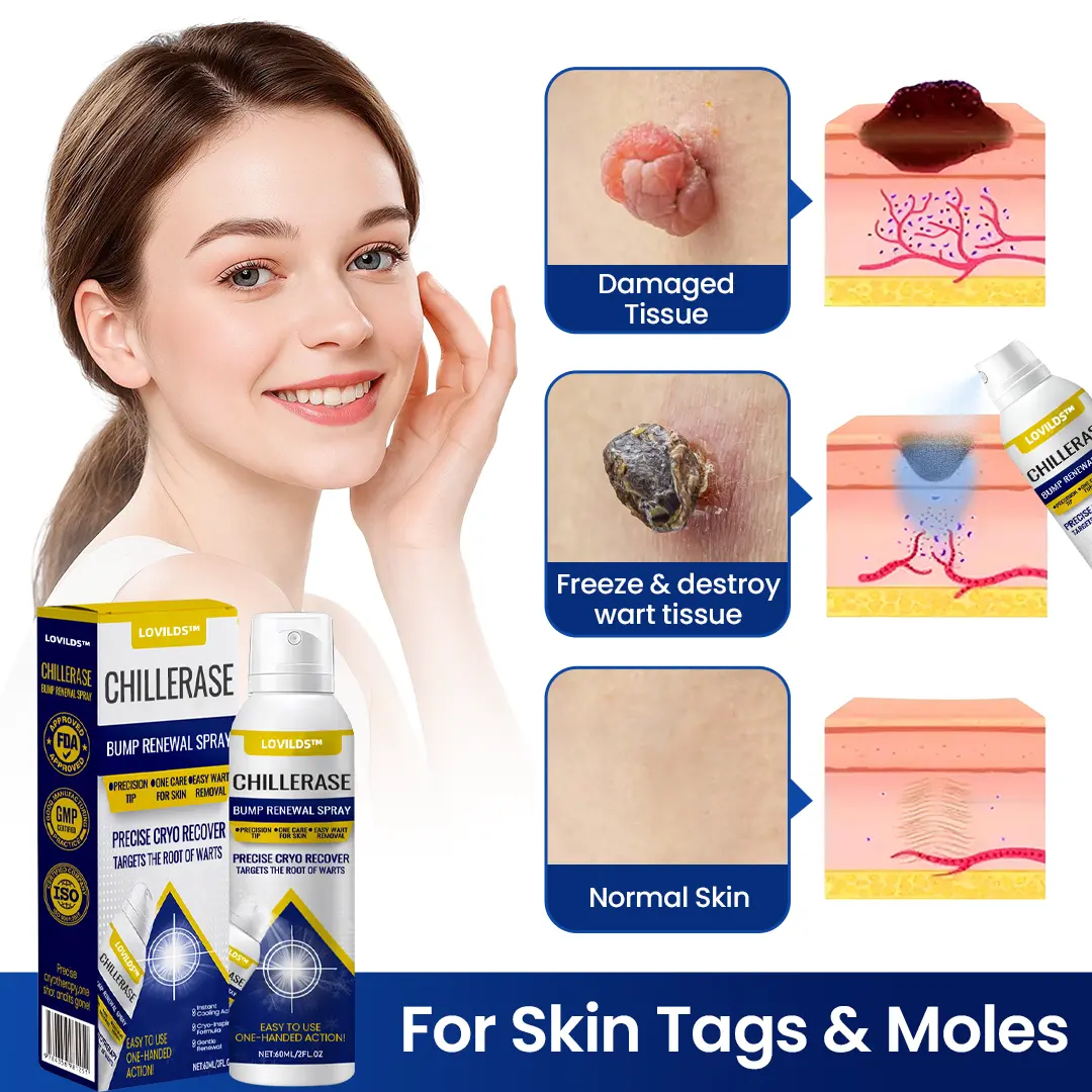 LOVILDS™ ChillErase Bump Renewal Spray uses advanced cryo-cooling technology to precisely target uneven surface areas.
